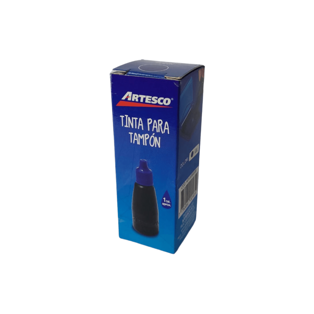 Tinta para Tampón (sellos de goma) 30 ml. Color: Azul. Marca: Artesco. Imágenes referenciales.