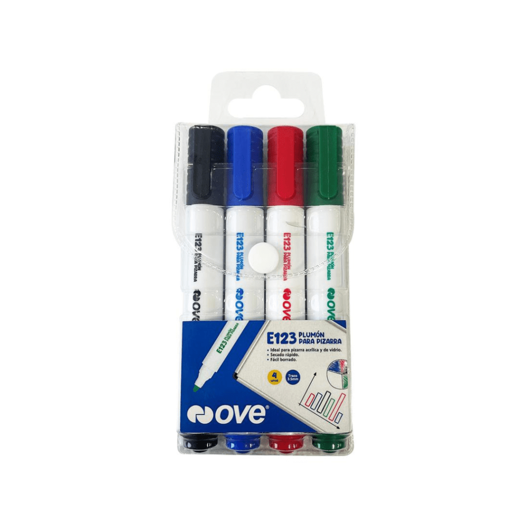 Punta gruesa. De fácil borrado. Colores: Rojo, verde, azul y negro. Imágenes referenciales.
