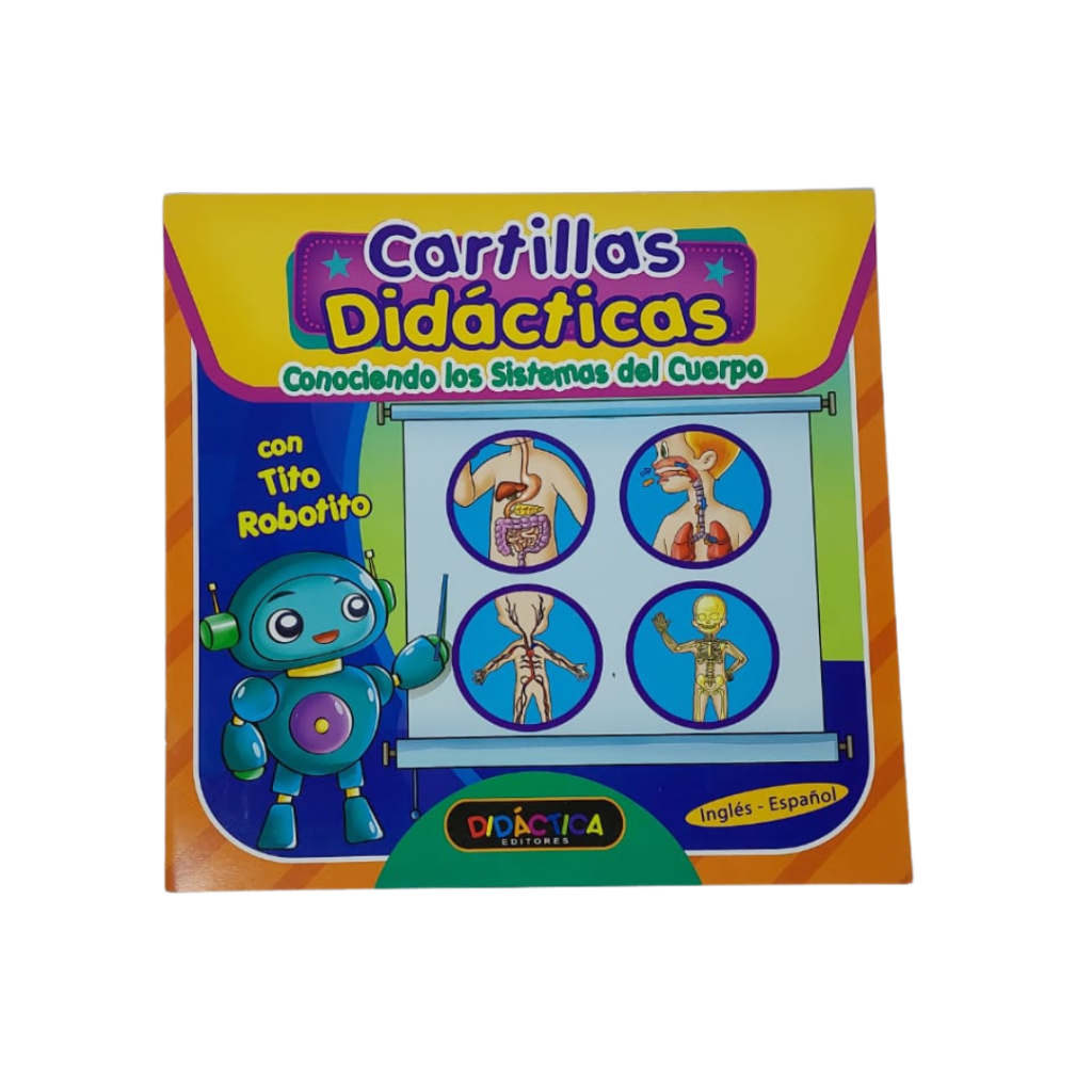 Cartilla educativa. Tamaño 24 x 23cm. 11 Páginas. Conociendo los Sistemas del Cuerpo «con Tito Robotito». Dúplex plastificado.
