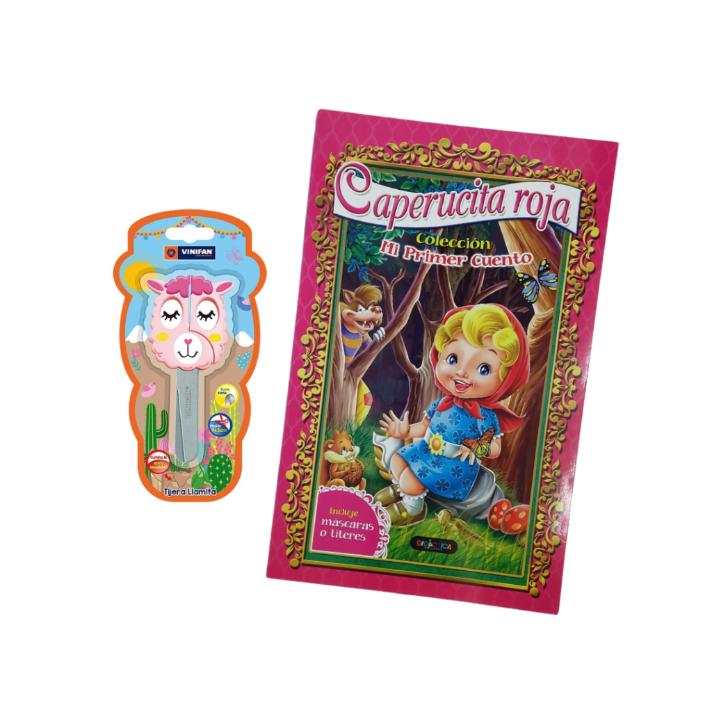 Mi primer Cuento (a escoger) + Tijera Diseño Llamita Vinifan. Imágenes referenciales.