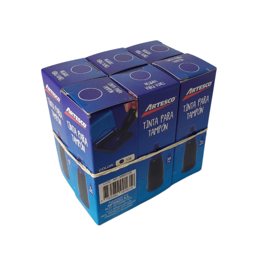 Tinta para Tampón (sellos de goma) 30 ml. Color: Azul. Marca: Artesco. Paquete x 6 Unidades. Imágenes referenciales.