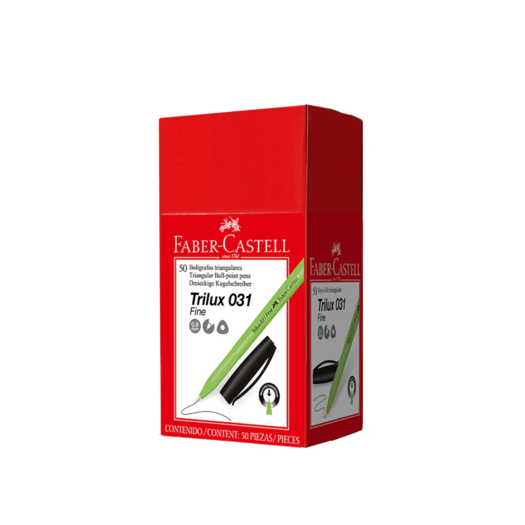 Lapicero Punta fina de 0.8 mm. Tinta seca. Color: Negro. Marca: Faber Castell. Caja x 50 Unidades. Imágenes referenciales.