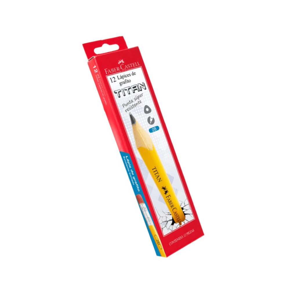 Lápices grafito Titan 2B. Marca: Faber Castell. Borrador incorporado. Diseño triangular. Caja x 12 Unidades. Imágenes referenciales.