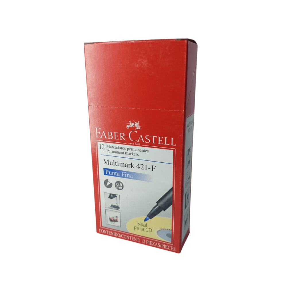 Lapicero Punta fina de 0.8 mm. Tinta seca. Color: Azul. Marca: Faber Castell. Caja x 50 Unidades. Imágenes referenciales.