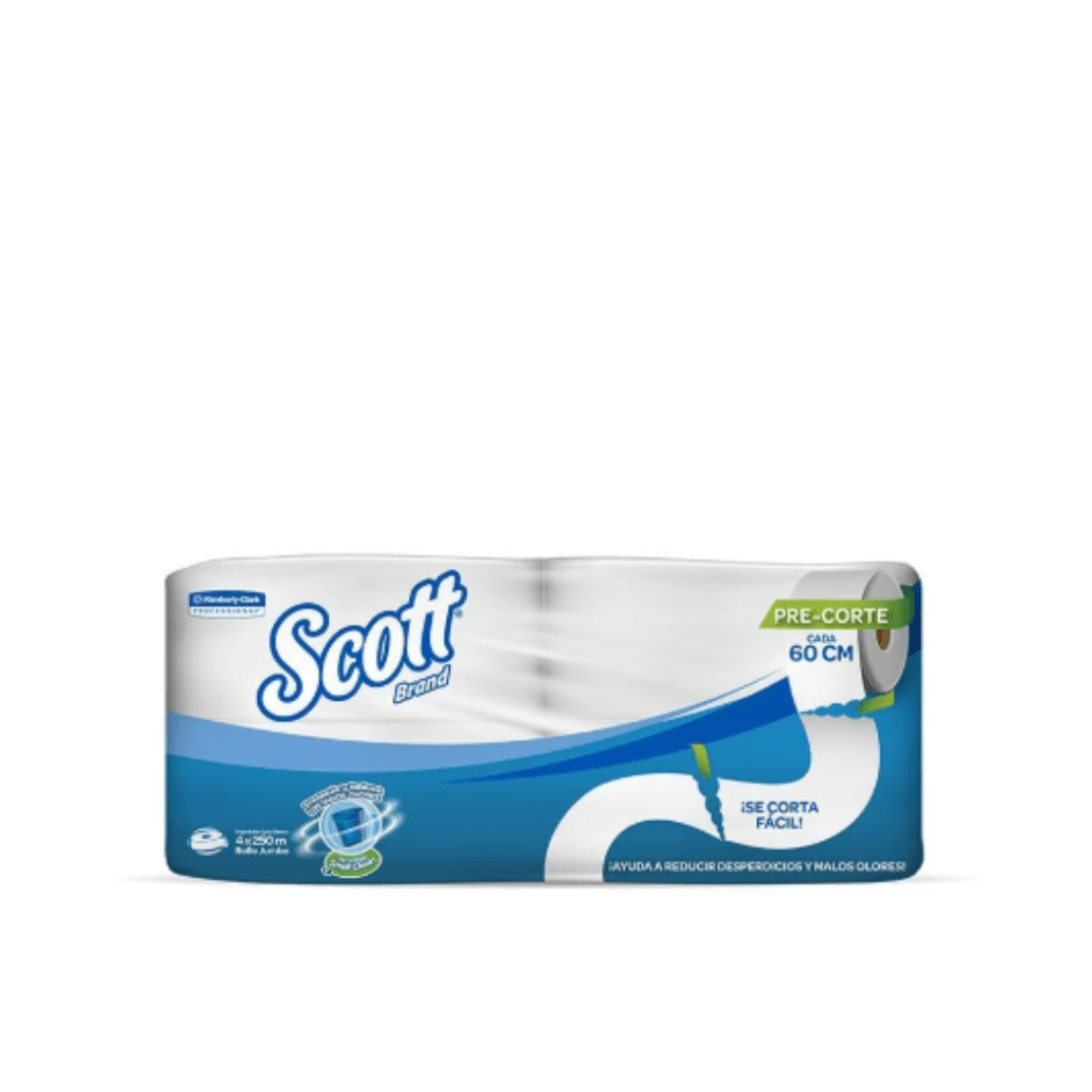 Papel Higiénico Scott Blanco 4 rollos X 250 mts / 30245194 KCP. Jumbo Scott blanco doble hoja le ofrece un mejor costo en uso, mejor apariencia.