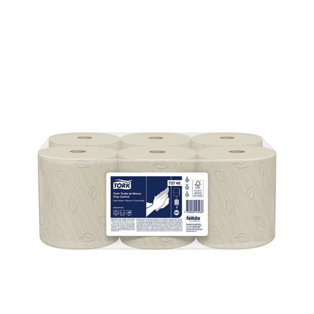Papel Toalla Blanco Doble Hoja 6 Rollos de 120 Mts Familia Institucional.
